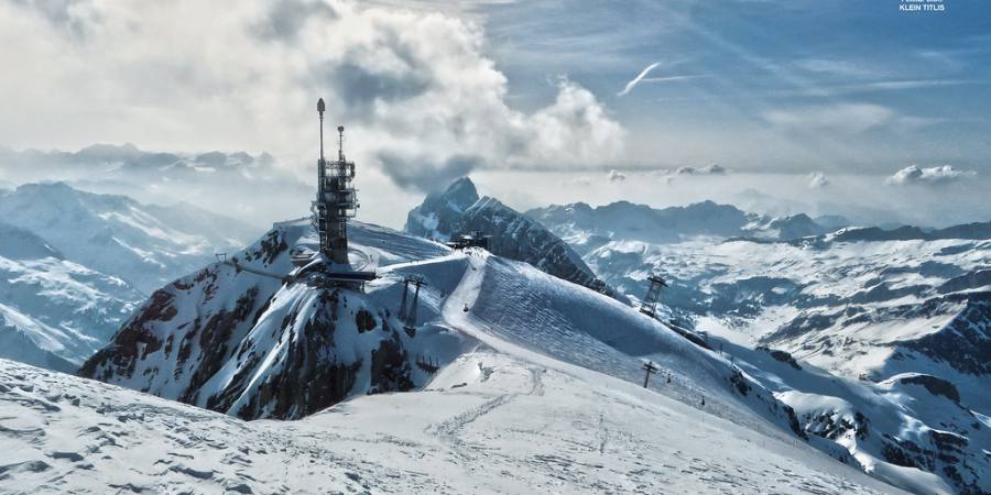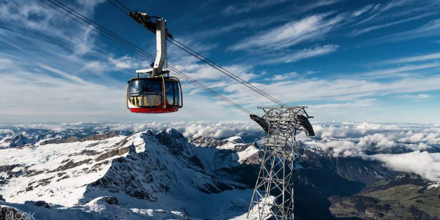 到铁力士山谷缆车站乘坐缆车登上铁力士雪山之巅(海拔3239米),缆车分为两段,中途需换乘。最后一段为360度旋转登山缆车,可以欣赏到阿尔卑斯上的壮丽全景。