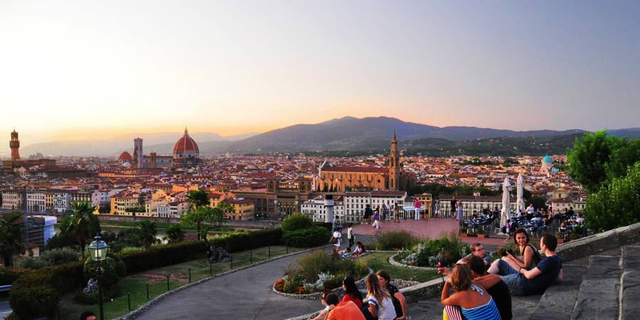 米开朗琪罗广场位于佛罗伦萨市区南端高地上,有佛罗伦萨的象征——大卫青铜像,建于1869年,由建筑设计师朱塞佩·波吉设计,用以纪念文艺复兴时期的伟大艺术家米开朗琪罗。 波吉还设计了一座华丽的露台,现在是一家全景餐厅。在露台墙上有如下铭文:“佛罗伦萨建筑师朱塞佩波吉,这里是他的纪念碑”。 米开朗基罗广场的落日非常美,这里也是俯瞰和拍摄佛罗伦萨全城美景的好位置。