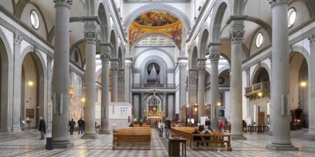 圣洛伦佐教堂曾是美第奇家族历代的礼拜堂,由3个时代、建筑样式都不同的空间(布鲁涅内斯基建造的旧圣器室、米开朗基罗建造的新圣器室、17世纪的君主礼拜堂)构成。旧圣器室属于文艺复兴初期的新古典主义风格,摒弃了多余的装饰,充满优雅、清朗的气氛。进入新圣器室需要绕到教堂后面的美第奇礼拜堂,这里收藏着米开朗基罗的9尊雕像。从雅致的庭院经米开朗基罗设计的台阶登上二层,就是圣洛伦佐图书馆,收藏有由美第奇家族历代收集的共1万册古书。这里还是美第奇家族陵墓所在。 门票:圣洛伦佐教堂6欧元;美蒂奇家族礼拜堂9欧元 司导不陪同进入