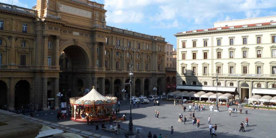 共和广场是佛罗伦萨的一个城市广场。这个地点最初是古罗马城镇的广场,后来成为该市的旧犹太区,当佛罗伦萨成为统一的意大利首都期间,进行了城市改建,修建林荫大道,这个犹太区也被彻底清理,但广场上如今仍可见到犹太区的遗迹。高级酒店、餐厅、咖啡馆和各种品牌的专卖店围绕着整个广场,因此,整个广场的气氛相较于其他的广场也更加休闲和活跃。在广场上的咖啡馆中,Giubbe Rosse咖啡馆是著名艺术家和作家,特别是那些未来派艺术家的聚会场所。 广场上还有许多街头艺人,很多自发组成的小乐队会在这里演奏。广场上的古老旋转木马也是这里最有人气的一点。