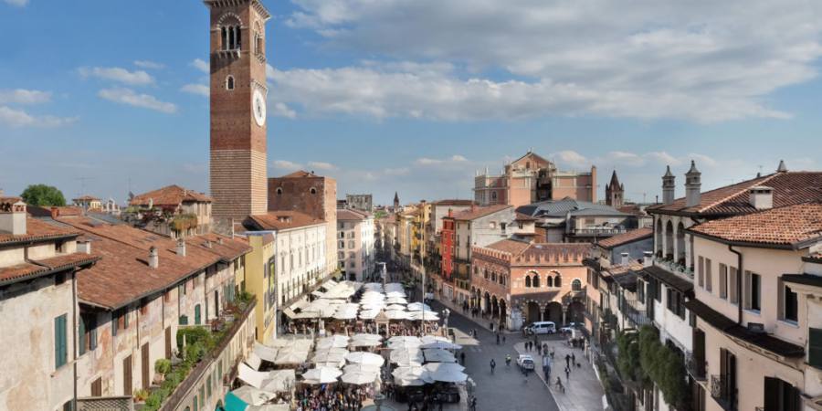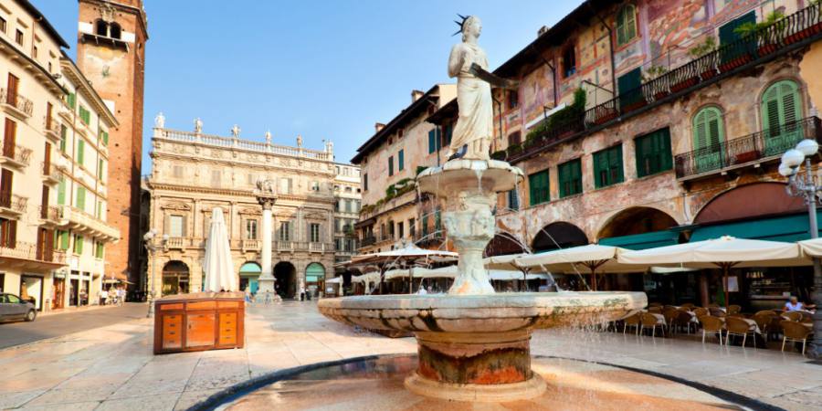 百草广场上矗立着许多老建筑,包括高耸的朗贝尔蒂钟楼(Torre dei Lamberti)、巴洛克风格立面的马赛宫(Palazzo Maffei)、带有文艺 复兴时期外墙壁画的马赞提宫(Case Mazzanti)、典型的中世纪建筑 商人之家(Domus Mercatorum)和古老的维罗纳圣母喷泉等等。 圆形竞技场是是一座古罗马圆形竞技场,是历史名城维罗纳的地标式建筑、维罗纳的露天剧场,也是意大利第三大圆形竞技场。建于公元1世纪奥古斯特王朝晚期,距今近2000年历史,位于维罗纳市中心的布拉广场上。