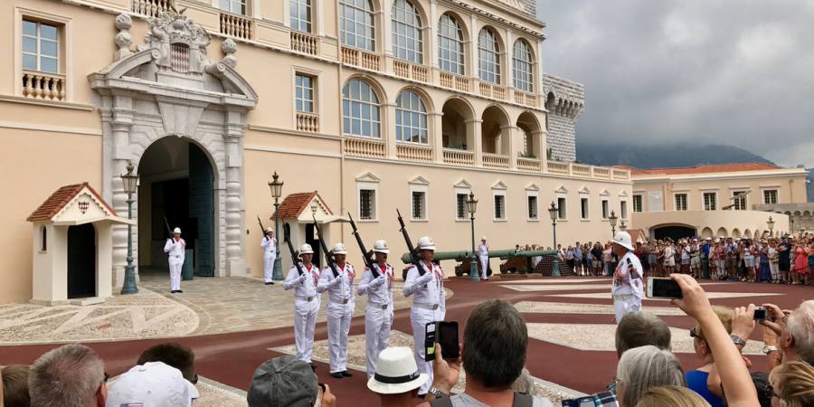摩纳哥(Monaco),摩纳哥公国地处法国南部,除了靠地中海的南部海岸之外,全境北、西、东三面均与法国接壤,面积只有1.98平方公里,是世界上第二小的微型国家。摩纳哥没有工业,主要以赌场、旅游业和银行业为主,著名的蒙特卡洛赌场为摩纳哥带来了财富与繁荣。摩纳哥没有个人所得税,因此吸引了很多富有的移民,在摩纳哥随处可见各种豪华车辆和游艇,城市干净、整洁,到处是鲜花。 景点根据当天游玩时间,可以自助选择,需要门票的景点需自费。 摩纳哥王宫广场11:55有卫兵换岗,升旗等仪式,充满欧罗巴古风,吸引不少观光客驻足观赏。