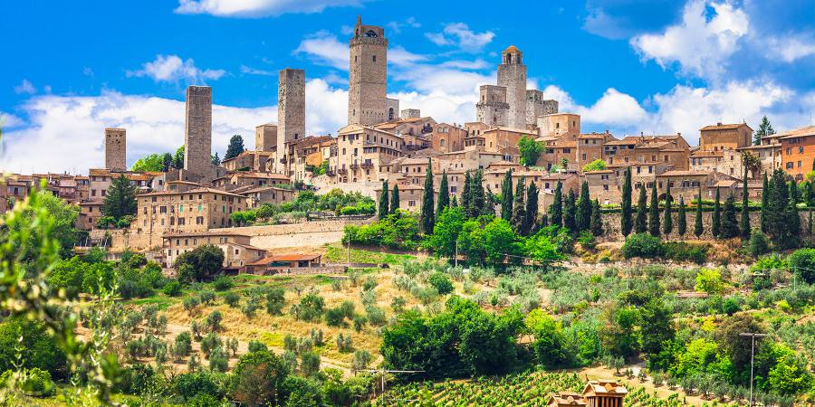 09:00-10:00 旅客下榻的酒店接上车后,前往圣吉米尼亚诺(San Gimignano)