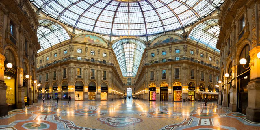 作为购物中心的伊曼组尔二世走廊,聚集着世界不少名品,道路两旁有咖啡馆、餐馆、书店及汉堡包店各种店,到处是休息的市民及游客,这里总是很热闹。穿过这条通道来到的斯卡拉广场 Piazza della SealaL有列奥纳尔德·达·芬奇的像。米兰的“客厅咖啡馆”听说是供应米兰极好的咖啡,一杯卡布其诺要价6,000里拉。这里还时常会有活动举办,独具意大利特色,吸引当地居民和世界各地游客前来围观,周边的商铺也因此得利,人们纷纷游逛于富有特色的不同商铺间,甚至会眼花缭乱。