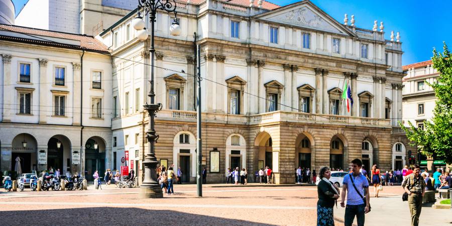 斯卡拉大剧院是原址重建的第二座剧院,首座剧院公爵剧院(Teatro Ducale)于1776年2月25日在一个狂欢会后发生的一场大火中焚毁。意外事件发生后,90名在旧剧院内拥有私人包厢的米兰富翁写信给奥地利大公斐迪南一世,要求重建一座新剧院,及一座临时剧院供新剧院未竣工前使用。1778年在斯卡拉圣母堂的旧址上建成,大剧院于1778年8月3日正式启用,门前是斯卡拉广场,广场中间竖立着达芬奇的雕像。 开放时间:博物馆开放时间:9:00-12:30(最后进入时间为12:00),13:30-17:30(最后进入时间为17:00)。 闭馆时间:12月7日,12月24日下午,12月25-26日,12月31日下午,1月1日,复活节,5月1日,8月15日。
