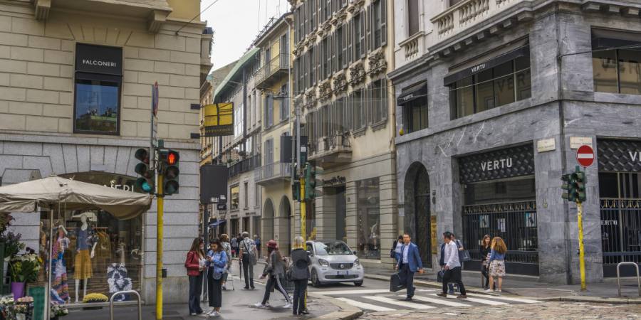蒙特拿破仑大街是米兰和意大利极为优雅和昂贵的一条购物街,以时装和珠宝商店而闻名。这条街是米兰这个公认的世界时尚之都的"时尚四边形"(Quadrilatero della moda)中很重要的一条街。虽然不是人人都能负担得起,但是确实人人都想一睹这些大牌的真貌。你不需要一定带什么东西回家,就算来这条街上看看,你都会被街上美丽的建筑和浓厚的时尚气息所感染。 走在蒙特拿破仑街上,踩着石板路,并不感觉它的宽敞,更像一条幽雅的小巷。看似普通的街道,有拥挤的人群,停留着名车,还有那一个个熟悉的品牌名字Armani,Versace,Fendi,Hermes以幽雅的姿态开在充满意大利风情的欧式建筑物里。这里的店面橱窗设计精美,标新立异,诠释了品牌的概念。如果不是专注于购物,那么做个玻璃窗外的人,看看设计师精心打造的名店橱窗,也足够雀跃。