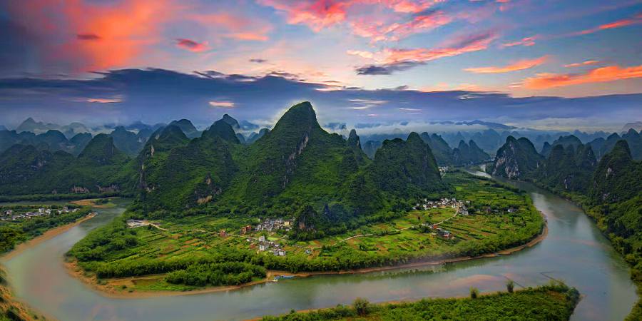 登顶上帝视角观赏漓江第一湾,前所未有的视角让您体验真正不一样的桂林: 群峰排列有序,清澈的漓江蜿蜒流淌在群山怀抱中。这里的光影、云海、日出、彩霞吸引了无数的摄影家和摄影爱好者,桂林摄影家在此拍摄的作品曾获第10届国际影展铜奖。