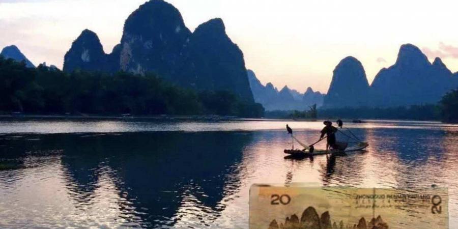 打卡网红20元年人民币背景,黄布倒影