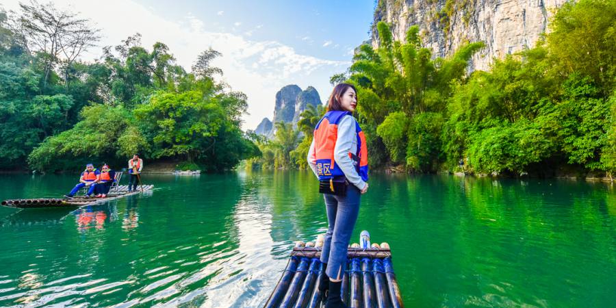 9:00-10:00 骑行或漫步游览“小漓江”之称的遇龙河,悠闲享受田园山水风景。可选择自行车/电驴/景区电瓶车